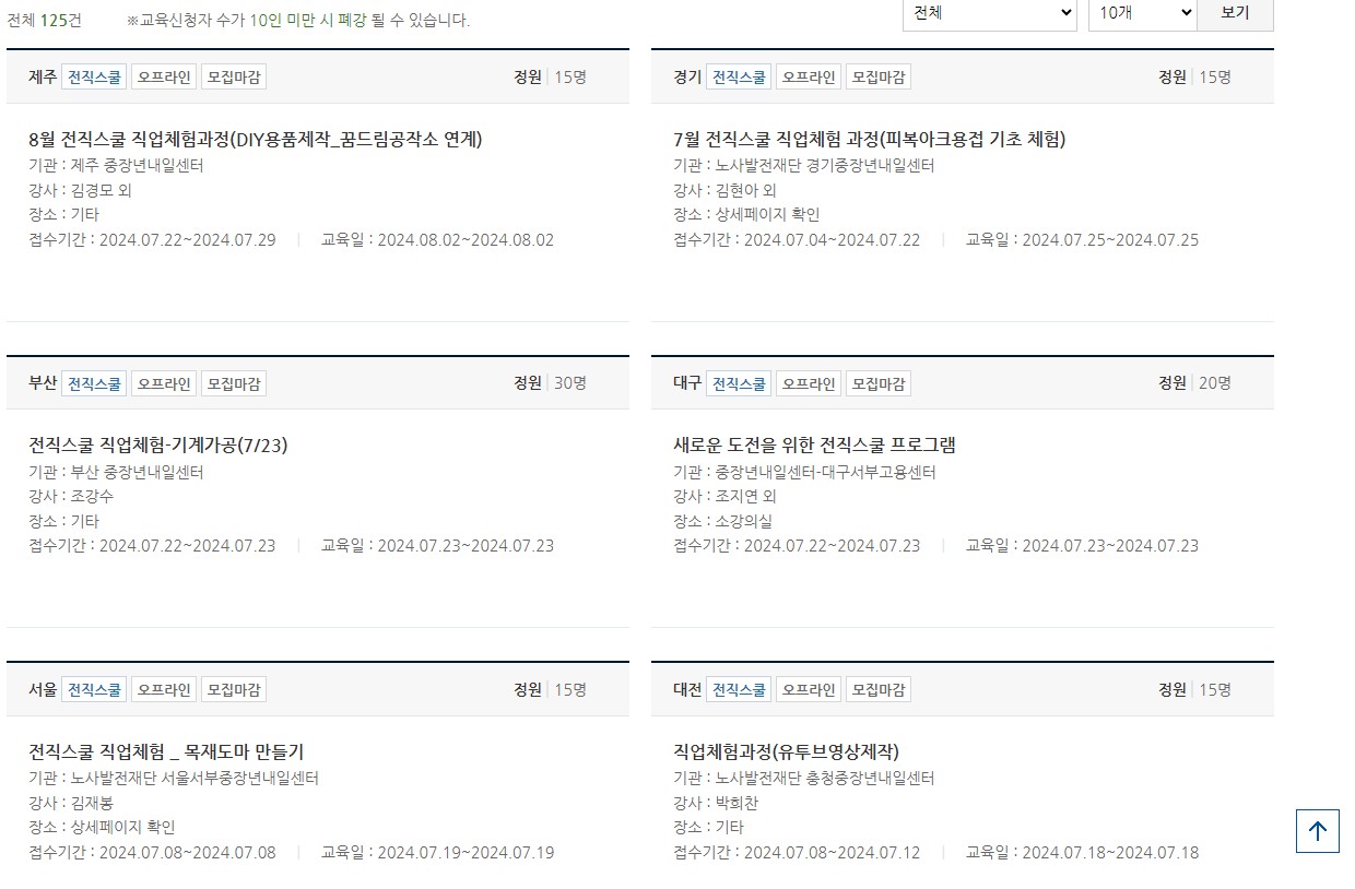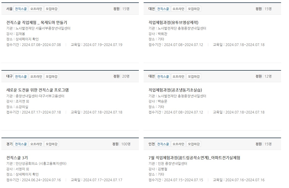 각 지역 중장년내일센터에 문의 교육비 : 무료(식사 및 수료증 제공)