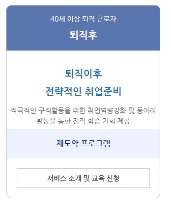 중장년 내일센터 지원하는 전직지원의 효과를 높이는 교육 서비스
