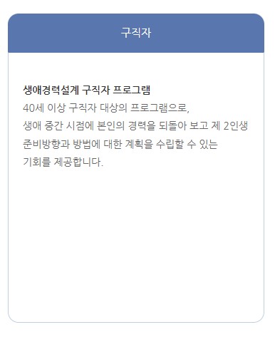 신청방법 : 생애경력설계 서비스 오프라인 교육을 통해 신청